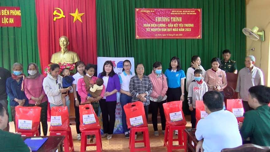 Hành trình Xuân Biên Cương năm nay, đoàn đã đến thăm chúc mừng năm mới các chiến sĩ, bà con đồng bào, các em thiếu nhi tại Đồn biên phòng Lộc An, xã Lộc An, huyện Lộc Ninh, tỉnh Bình Phước. Đồng thời, trao tặng 20 suất học bổng gồm quà và tiền mặt trị gía mỗi phần 500 ngàn đồng cho thiếu nhi có hoàn cảnh khó khăn; trao tặng công trình thanh niên trị giá 5 triệu đồng; trao tặng 30 phần quà cho phụ nữ đồng bào dân tộc trị giá 15 triệu đồng và 20 thùng mì, 20 bao gạo 25kg gửi tặng đến các chiến sĩ, đồng bào tại nơi đây thể hiện sự tri ân sự đóng góp thầm lặng, dũng cảm của lực lượng biên phòng; sự sẻ chia với những khó khăn của bà con đồng bào và tiếp tục góp phần chắp cánh ước mơ "Nâng bước em đến trường" cho các em thiếu nhi vùng biên giới có hoàn cảnh đặc biệt khó khăn nơi đây.
