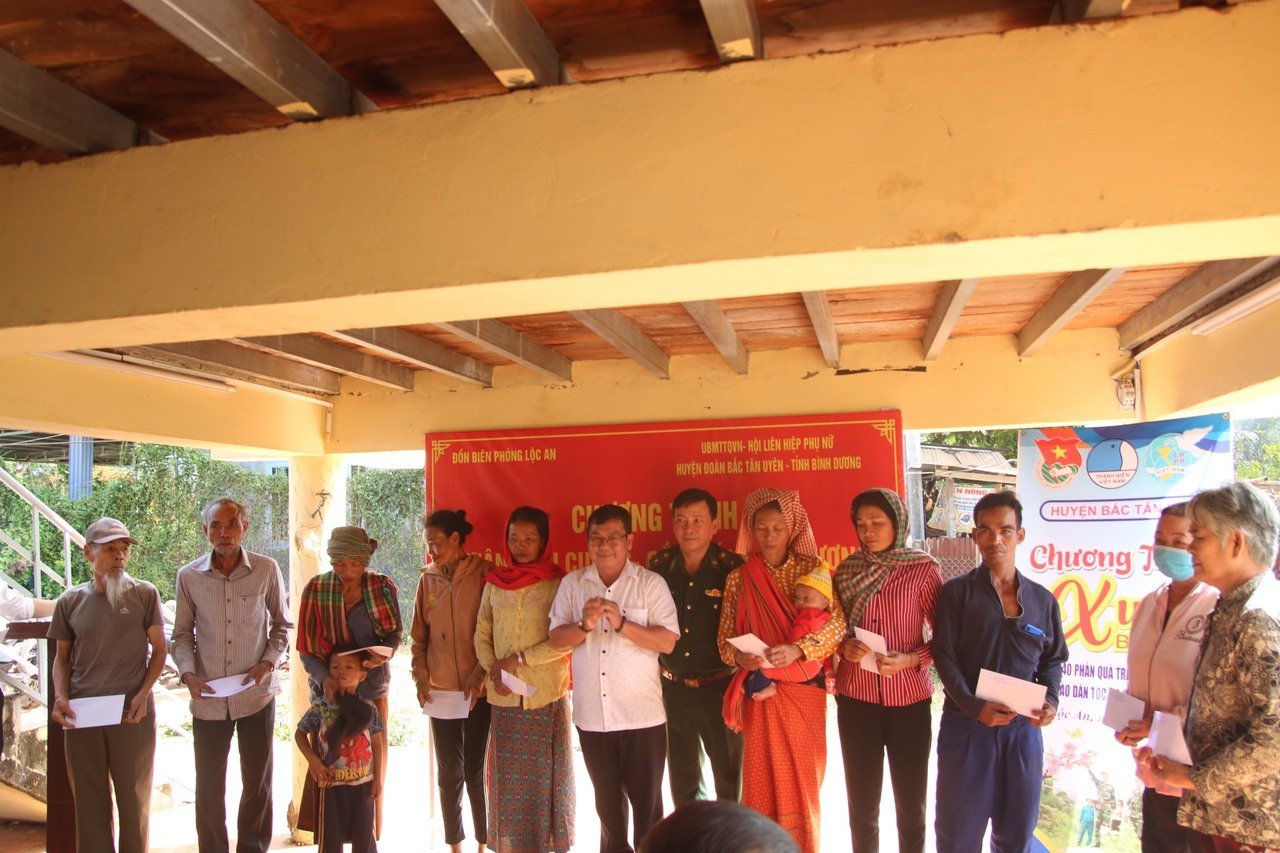 Sáng ngày 24-1, tại xã Lộc An, huyện Lộc Ninh, tỉnh Bình Phước, Ủy ban MTTQVN huyện Bắc Tân Uyên phối hợp với Hội Liên hiệp Thanh niên huyện và Hội Liên hiệp phụ nữ huyện tổ chức Hành trình Xuân Biên Cương năm 2024. Tham dự hành trình có ông Phạm Văn An - UVTV huyện ủy, Trưởng ban Dân vận Huyện ủy, Chủ tịch Ủy ban MTTQVN huyện; bà Phan Thị Ngọc Lợi - Chủ tịch Hội LHPN huyện; bà Hồ Thị Thanh Tuyền- Phó Bí thư Huyện Đoàn cùng đại diện lãnh đạo Ban CHQS huyện.
