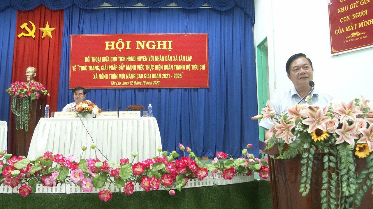 Dự và phát biểu tại hội nghị, ông Võ Văn Tính-Phó Bí thư Thường trực Huyện ủy-Chủ tịch HĐND huyện đã cảm ơn và ghi nhận những ý kiến đóng góp hết sức thiết thực của nhân dân xã Tân Lập; đồng thời mong muốn và đề nghị bà con nhân dân, cộng đồng các doanh nghiệp trên địa bàn xã Tân Lập nói riêng và huyện Bắc Tân Uyên nói chung tiếp tục chủ động, tích cực đồng hành cùng với chính quyền địa phương trong quá trình xây dựng nông thôn mới, sẵng sàng góp công, góp của và tham gia hiến kế để việc thực hiện Chương trình mục tiêu quốc gia xây dựng nông thôn mới; thực hiện các tiêu chí và chỉ tiêu trong bộ tiêu chí xã nông thôn mới nâng cao giai đoạn 2021-2025 ngày càng hiệu quả và nâng cao chất lượng.