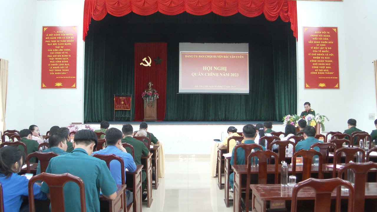 Sáng ngày 06/12, Đảng ủy, Ban Chỉ huy Quân sự huyện Bắc Tân Uyên tổ chức Hội nghị Quân chính năm 2023. Tham dự hội nghị có Thượng tá Nguyễn Đình Tuấn- Phó Tham mưu trưởng bộ chỉ huy quan sự tỉnh; Thượng tá Lê Văn Toàn- UVTV, Chỉ huy trưởng BCH quân sự huyện; Thượng tá Trương Văn Khâu- Phó Trưởng Công an huyện; cùng các đồng chí trong Đảng ủy, Ban CHQS huyện, đại diện lãnh đạo các cơ quan, ban, ngành đoàn thể huyện và Chỉ huy trưởng, Chính trị viên Ban CHQS 10 xã, thị trấn.