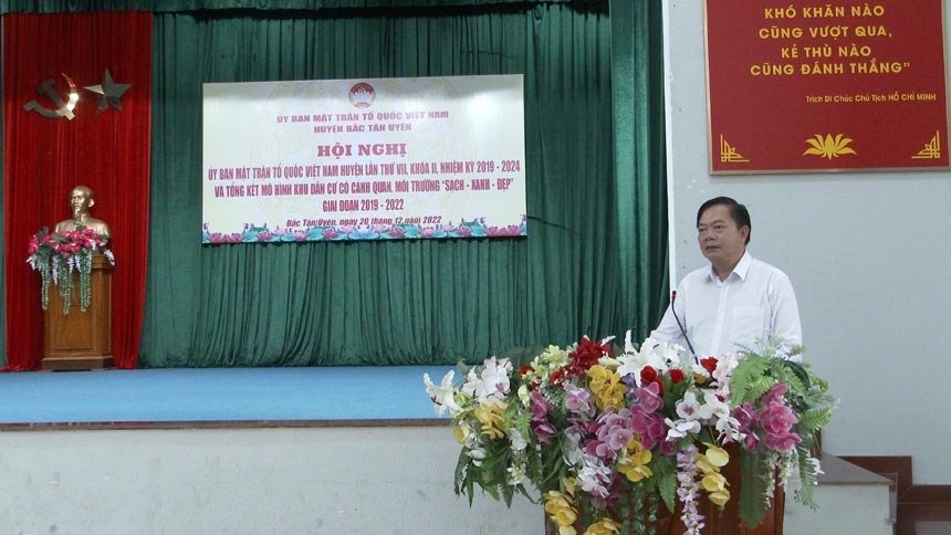 Phát biểu kết luận Hội nghị, ông Võ Văn Tính - Phó Bí thư Thường trực Huyện ủy, Chủ tịch HĐND huyện đánh giá cao sự nỗ lực cố gắng của tập thể Ban Thường vụ Huyện ủy, Ban Chấp hành Đảng bộ huyện, các ban, phòng, ngành, Ủy ban MTTQ, các đoàn thể Huyện; Bí thư các chi, đảng ủy trực thuộc đã góp phần hoàn thành tốt nhiệm vụ chính trị trong năm 2022. Đồng thời yêu cầu từng cơ quan, đơn vị, địa phương cần có giải pháp khắc phục những tồn tại, hạn chế đã được chỉ ra. Về nhiệm vụ trọng tâm năm 2023, đồng chí Phó Bí thư Huyện ủy yêu cầu MTTQ các cấp cần tập trung chỉ đạo tổ chức quán triệt triển khai thực hiện các chỉ thị, nghị quyết của trung ương, của tỉnh trọng tâm là tuyên truyền nghị quyết Đại hội 13 của Đảng và nghị quyết đại hội Đảng các cấp; tổ chức các hoạt động kỷ niệm 93 năm ngày truyền thống Mặt trận dân tộc thống nhất Việt và Ngày hội “Đại đoàn kết toàn dân tộc” tại khu dân cư; phối hợp tham mưu UBND huyện tổ chức thăm hỏi động viên chúc mừng các cơ sở tôn giáo, cơ sở thờ tự nhân các ngày lễ lớn trên địa bàn; Phát huy vai trò lực lựng nòng cốt của các tổ chức tôn giáo trong hoạt động công tác nắm bắt dư luận xã hội tại địa phương; Phối hợp cùng chính quyền, các tổ chức thành viên trong thực hiện Cuộc vận động “toàn dân đoàn kết xây dựng nông thôn mới, đô thị văn minh” góp phần cùng toàn huyện thực hiện việc nâng cao các tiêu chí về nông thôn mới nâng cao, nông thôn mới kiểu mẫu....