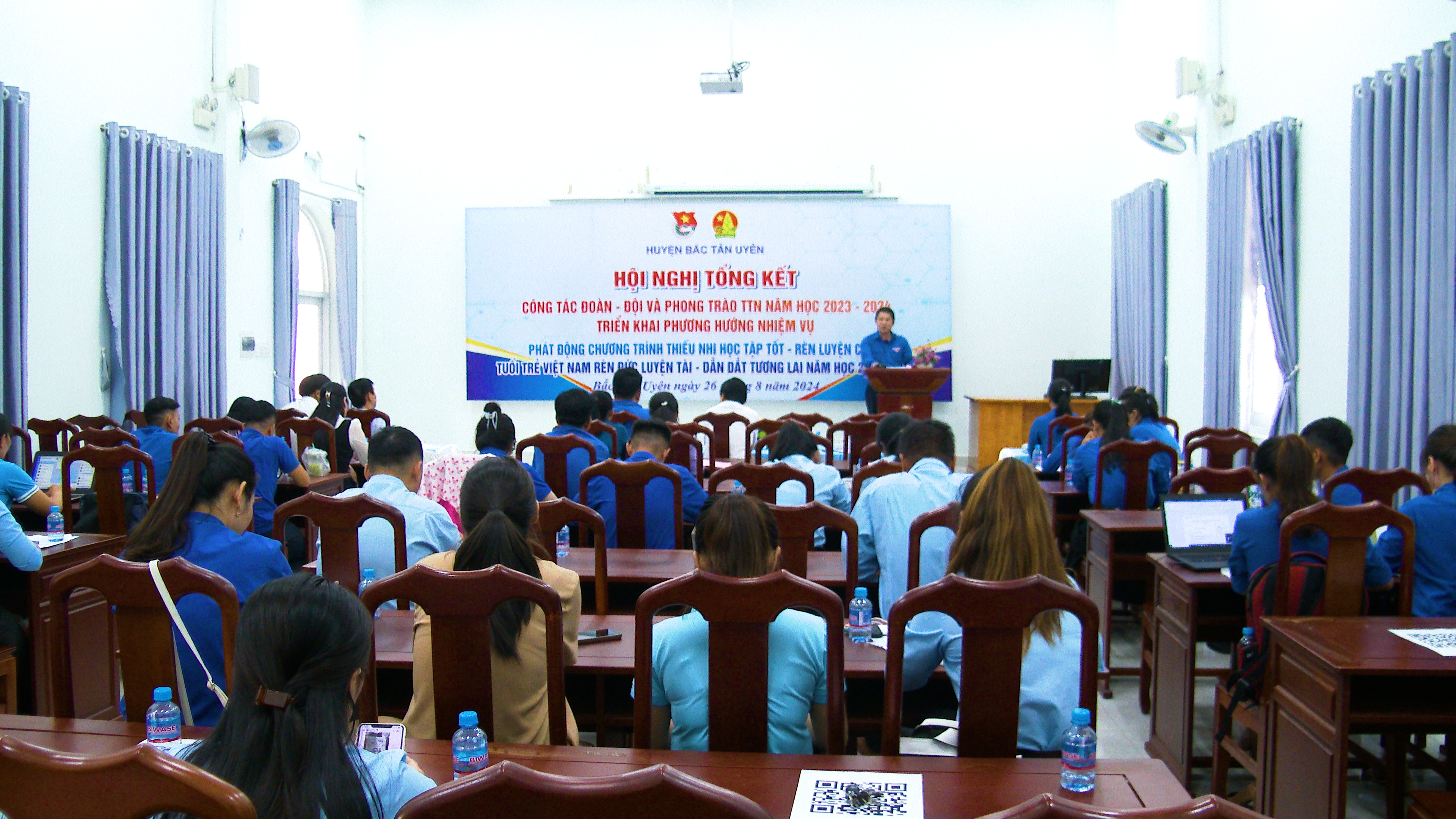 Chiều ngày 26-8 tại hội trường Trung tâm chính trị huyện, Hội đồng Đội huyện Bắc Tân Uyên tổ chức Hội nghị tổng kết công tác Đoàn - Đội và phong trào thanh thiếu nhi (TTN) năm học 2023 - 2024, triển khai phương hướng, nhiệm vụ công tác Đoàn - Đội năm học 2024 - 2025. Đến dự chương trình có anh Ngô Đăng Huy - Phó Trưởng Ban TTN - Trường học Tỉnh Đoàn Bình Dương; ông Nguyễn Tấn Anh - HUV, Trưởng Phòng giáo dục - đào tạo huyện; anh Đỗ Ngọc Lợi - Bí thư Huyện Đoàn cùng đại diện lãnh đạo các ban, ngành đoàn thể Huyện và gần 70 đại biểu là Chủ tịch hội đồng đội các xã, thị trấn; Bí thư Đoàn trường THPT; giáo viên Tổng phụ trách Đội các trường, các em học sinh, đội viên trên địa bàn huyện tham gia.