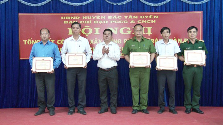Dịp này, Ủy ban nhân dân huyện Bắc Tân Uyên đã tặng giấy khen cho 06 tập thể có thành tích xuất sắc trong công tác xây dựng phong trào toàn dân tham gia phòng cháy chữa cháy năm 2020.