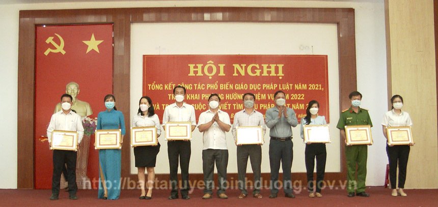 Trao tặng giấy khen cho các tập thể, cá nhân có thành tích xuất sắc trong công tác phổ biến, giáo dục pháp luật giai đoạn năm 2021