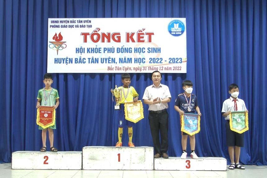 Sáng ngày 31-12, Phòng Giáo dục và Đào tạo huyện Bắc Tân Uyên đã tổ chức Hội nghị tổng kết Hội khỏe Phù Đổng huyện năm học 2022-2023. Tham dự buổi lễ có ông Nguyễn Tấn Anh - Trưởng Phòng GD&ĐT huyện cùng các thầy cô, Ban Giám hiệu các trường và hơn 200 vận động viên tiêu biểu trong toàn huyện.