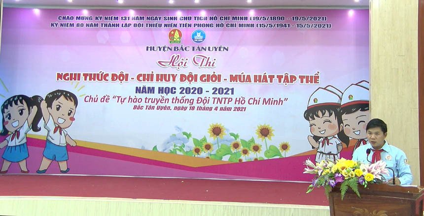 Thiết thực tổ chức các hoạt động chào mừng kỷ niệm 131 năm ngày sinh Chủ tịch Hồ Chí Minh (19/5/1890 – 19/5/2021); kỷ niệm 80 năm ngày thành lập Đội TNTP Hồ Chí Minh (15/5/1941 – 15/5/2021). Sáng 18/4 tại Trung tâm Văn hóa Thể thao và Học tập cộng đồng thị trấn Tân Thành, Huyện đoàn Bắc Tân Uyên phối hợp cùng phòng Giáo dục và Đào tạo huyện tổ chức hội thi “Nghi thức Đội - Chỉ huy Đội giỏi - Múa hát tập thể” năm học 2020 – 2021.