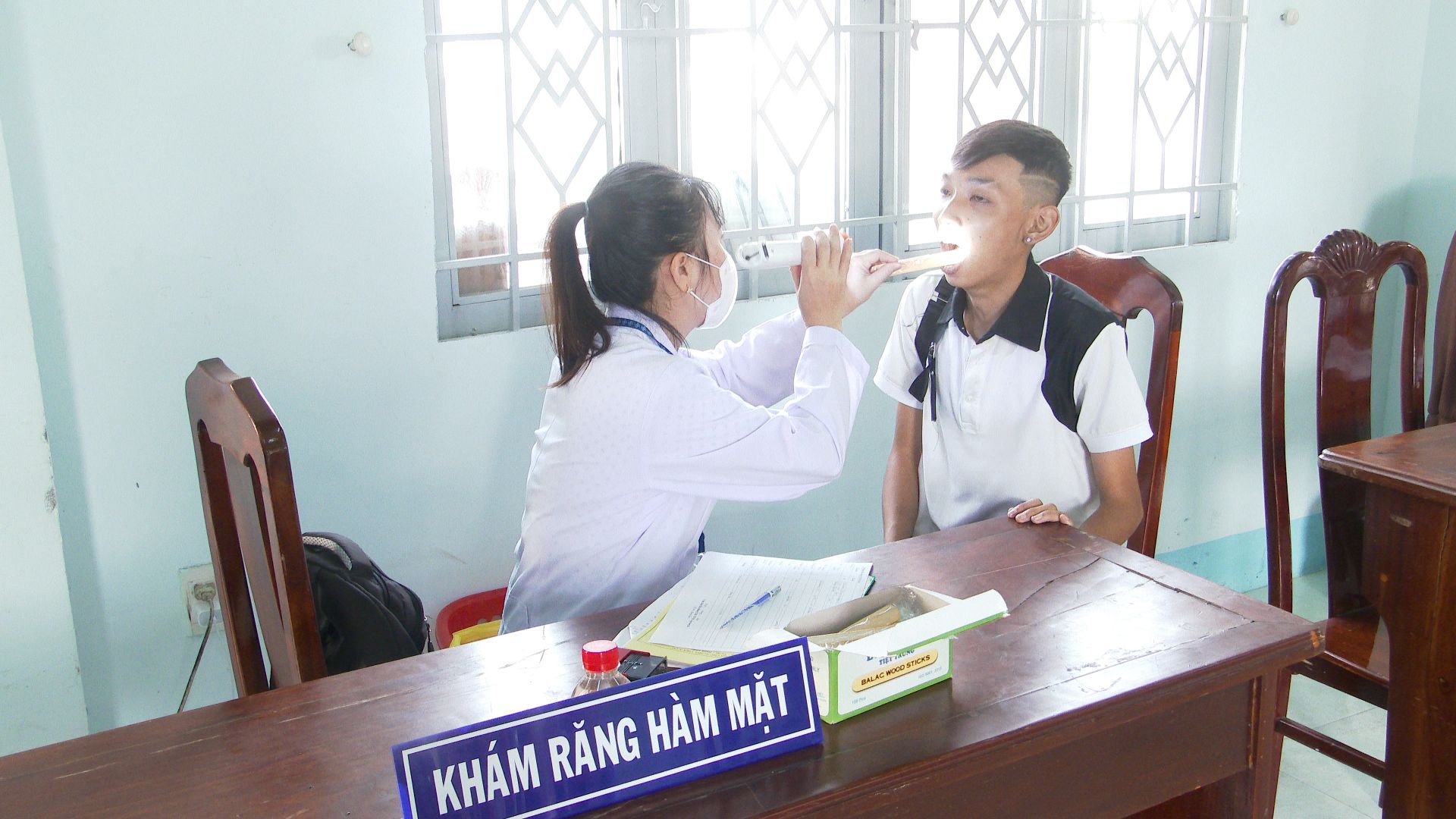 nhân viên y tế khám sức khỏe cho các thanh niên