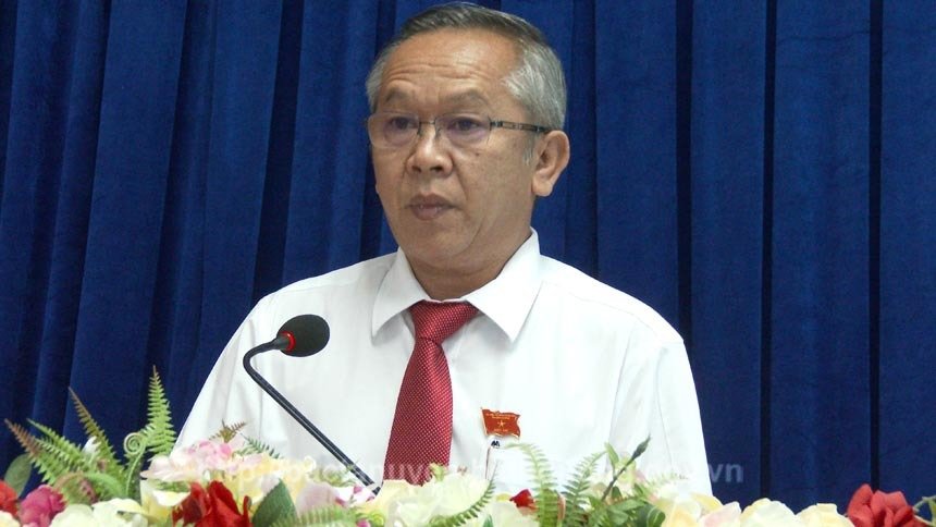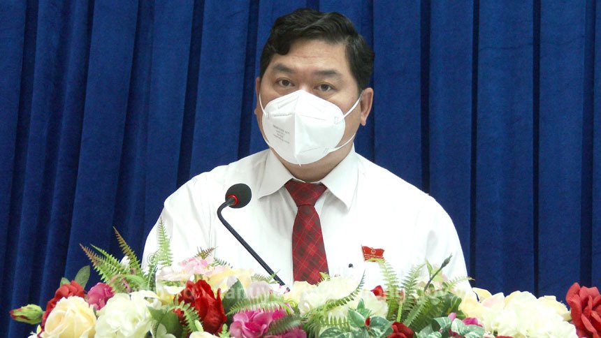 Ông Võ Văn Tính - Phó Bí thư Thường trực Huyện ủy- Chủ tịch HĐND huyện phát biểu khai mạc kỳ họp HĐND huyện lần thứ hai, khóa III nhiệm kỳ 2021-2026