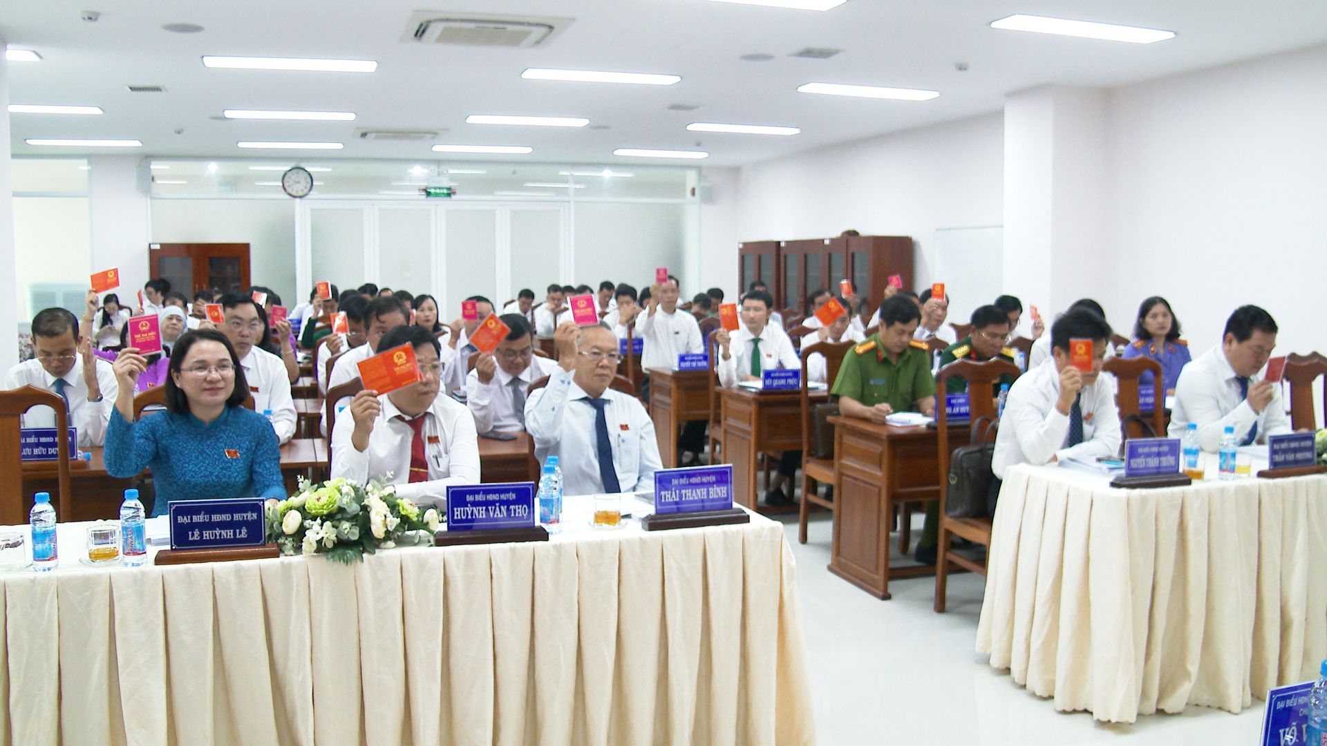 Qua một buổi làm việc nghiêm túc, kỳ họp HĐND huyện thứ 12 đã kết thúc thành công tốt đẹp. Phát biểu bế mạc kỳ họp, ông Võ Văn Tính - Phó Bí thư Huyện uỷ - Chủ tịch HĐND huyện đánh giá cao tinh thần trách nhiệm của các đại biểu; đồng thời yêu cầu các đại biểu, các cơ quan, ban, ngành của huyện cần tập trung thực hiện tốt các nhiệm vụ từ nay đến cuối năm 2024; đề ra các giải pháp thực hiện đạt các chỉ tiêu mà HĐND huyện đề ra trong năm cũng như những Nghị quyết HĐND huyện vừa thông qua.