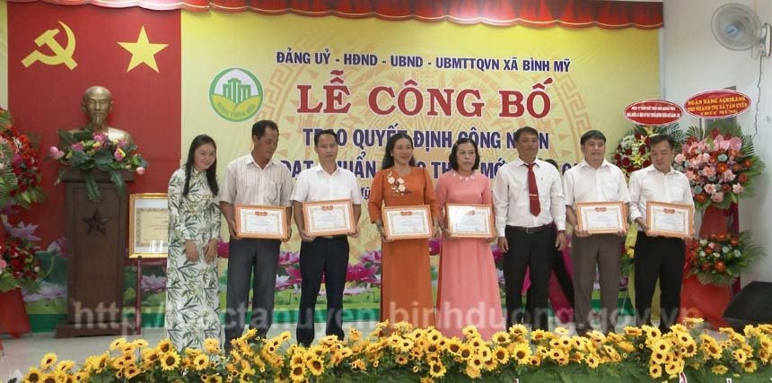 Dịp này, UBND tỉnh đã trao Bằng công nhận xã Bình Mỹ đạt chuẩn nông thôn mới nâng cao năm 2021 cho Đảng bộ, chính quyền, nhân dân xã Bình Mỹ. Ngoài ra, UBND xã Bình Mỹ còn tặng giấy khen cho 11 tập thể và 07 cá nhân đã có thành tích xuất sắc trong việc xây dựng xã Bình Mỹ đạt chuẩn nông thôn mới nâng cao năm 2021.