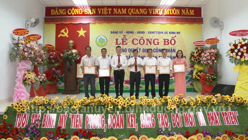 Trao Bằng công nhận xã Bình Mỹ đạt chuẩn nông thôn mới nâng cao năm 2021