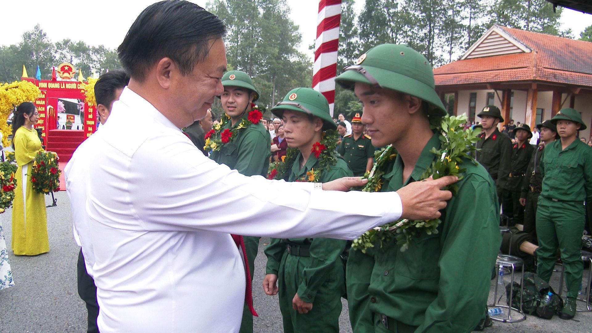 Thay mặt lãnh đạo huyện đồng chí Nguyễn Thành Thường-Phó Bí thư Huyện ủy-Chủ tịch UBND huyện-Chủ tịch Hội đồng nghĩa vụ quân sự huyện biểu dương tinh thần của các thanh niên và gia đình có con em lên đường nhập ngũ; mong muốn và tin tưởng rằng các thanh niên trúng tuyển đợt này sẽ phát huy truyền thống các thế hệ cha anh đi trước hoàn thành tốt nhiệm vụ mà đảng, nhà nước tin tưởng giao phó.