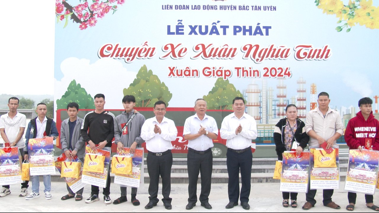 Năm nay là năm đầu tiên huyện Bắc Tân Uyên tổ chức chương trình Chuyến xe xuân nghĩa tình để đưa 30 công nhân lao động có hoàn cảnh khó khăn ở các tỉnh Thừa Thiên Huế, Quảng trị, Quảng Bình, Hà Tĩnh, Nghệ An, Thanh Hóa về quê đón tết cùng gia đình. Tổng kinh phí của chuyến xe xuân nghĩa tình là 62 triệu đồng. Đây là một trong những hoạt động nằm trong chuổi hoạt động chăm lo tết cho công nhân lao động của huyện Bắc Tân Uyên trong dịp tết Nguyên đán Giáp Thìn 2024 với tinh thần không ai bị bỏ lại phía sau, không để người lao động nào không có Tết.