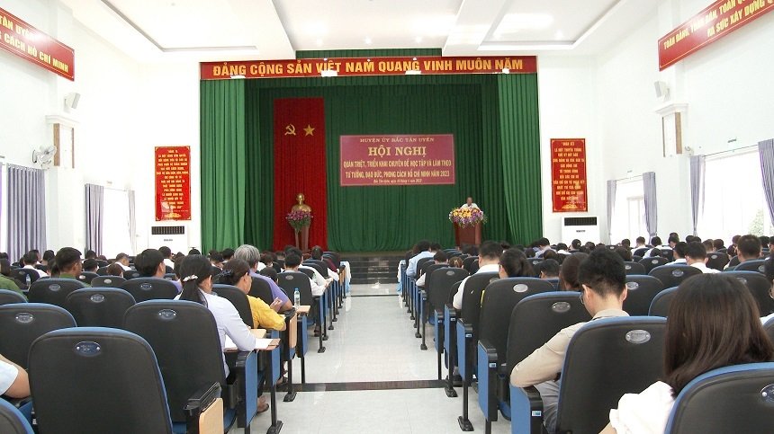 Ngày 5/4, Huyện ủy Bắc Tân Uyên tổ chức hội nghị quán triệt,triển khai chuyên đề học tập và làm theo tư tưởng, đạo đức, phong cách Hồ ChíMinh năm 2023 cho cán bộ, đảng viên, công chức, viên chức các chi, đảng bộ khốicơ quan Huyện.