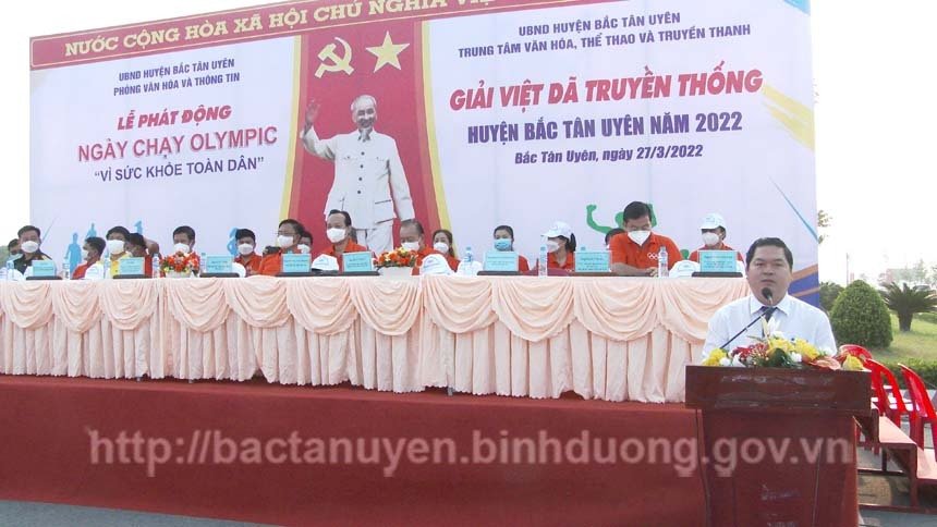 Sáng ngày 27-3, huyện Bắc Tân Uyên tổ chức Lễ phát động cuộc vận động Toàn dân rèn luyện thân thể theo hương Bác Hồ vĩ đại giai đoạn 2021-2030 kết hợp Ngày chạy Olympic vì sức khỏe toàn dân và giải Việt dã truyền thống huyện năm 2022. Tham dự Lễ phát động có ông Phan Văn Lam - Giám đốc Trung tâm Huấn luyện và Thi đấu Thể dục thể thao tỉnh, ông Võ Văn Tính - Phó Bí thư Thường trực Huyện ủy, Chủ tịch HĐND huyện, ông Trương Văn Phong - Phó Bí thư Huyện ủy, ông Phạm Văn An - Trưởng Ban Dân vận, Chủ tịch Ủy ban Mặt trận Tổ quốc Việt Nam huyện, ông Trần Văn Phương - Phó Chủ tịch UBND huyện cùng lãnh đạo các ban, ngành đoàn thể huyện, cán bộ công chức, viên chức huyện, các xã, thị trấn trên địa bàn huyện và hơn 130 vận động viên của các trường học trên địa bàn.