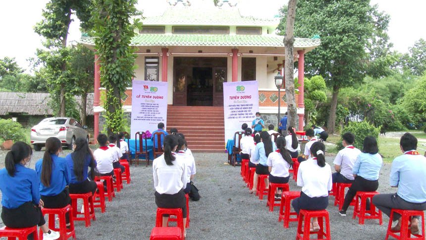 Chương trình Ngày đội viên diễn ra tại Nhà thờ thi tướng Huỳnh Văn Nghệ, xã Thường Tân