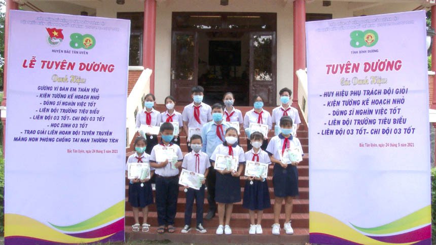 Dịp này, Tỉnh đoàn, Hội đồng Đội tỉnh Bình Dương đã trao các bằng khen và giấy chứng nhận của Hội đồng Đội Trung ương, UBND tỉnh Bình Dương và BCH Tỉnh đoàn Bình Dương cho 8 tập thể và 21 cá nhân có thành tích xuất sắc trong công tác Đội và phong trào thiếu nhi giai đoạn 2016 – 2021. Hội đồng đội Huyện Bắc Tân Uyên tuyên dương 80 gương thiếu nhi thực hiện tốt 5 điều bác Hồ dạy; 37 cá nhân và 9 tập thể có thành tích nổi bật trong các phong trào đoàn hội.