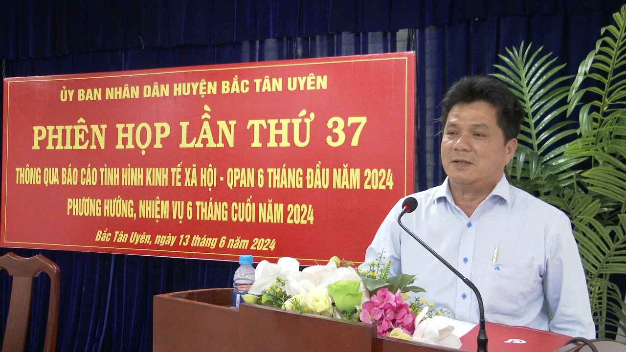 Sáng ngày 13/6, UBND huyện Bắc Tân Uyên tổ chức phiên họp lần thứ 23 nhằm đánh giá tình hình kinh tế-xã hội, quốc phòng-an ninh 6 tháng đầu năm và triển khai phương hướng, nhiệm vụ 6 tháng cuối năm 2024. Dự phiên họp có Ông Nguyễn Thành Thường-Phó Bí thư Huyện ủy-Chủ tịch UBND huyện, ông Trần Văn Phương-Ủy viên Thường vụ Huyện uỷ-Phó Chủ tịch UBND huyện và ông Nguyễn Văn Thuận-Huyện ủy viên-Phó Chủ tịch UBND huyện; cùng dự phiên họp có lãnh đạo các cơ quan, ngành huyện, lãnh đạo các xã, thị trấn.