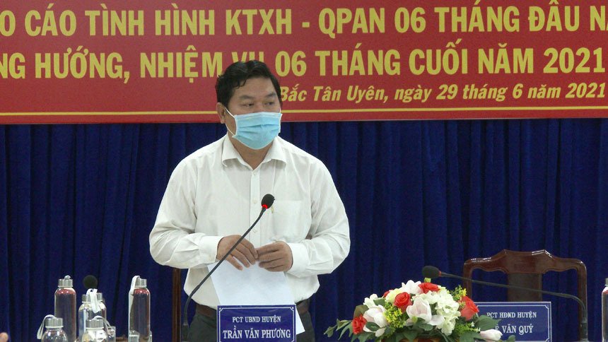 Ngày 29-6, ông Trần Văn Phương - Phó Chủ tịch UBND huyện Bắc Tân Uyên chủ trì phiên họp UBND huyện lần thứ 66 nhằm đánh giá tình hình kinh tế-xã hội, quốc phòng-an ninh 6 tháng đầu năm và triển khai phương hướng, nhiệm vụ 6 tháng cuối năm 2021.