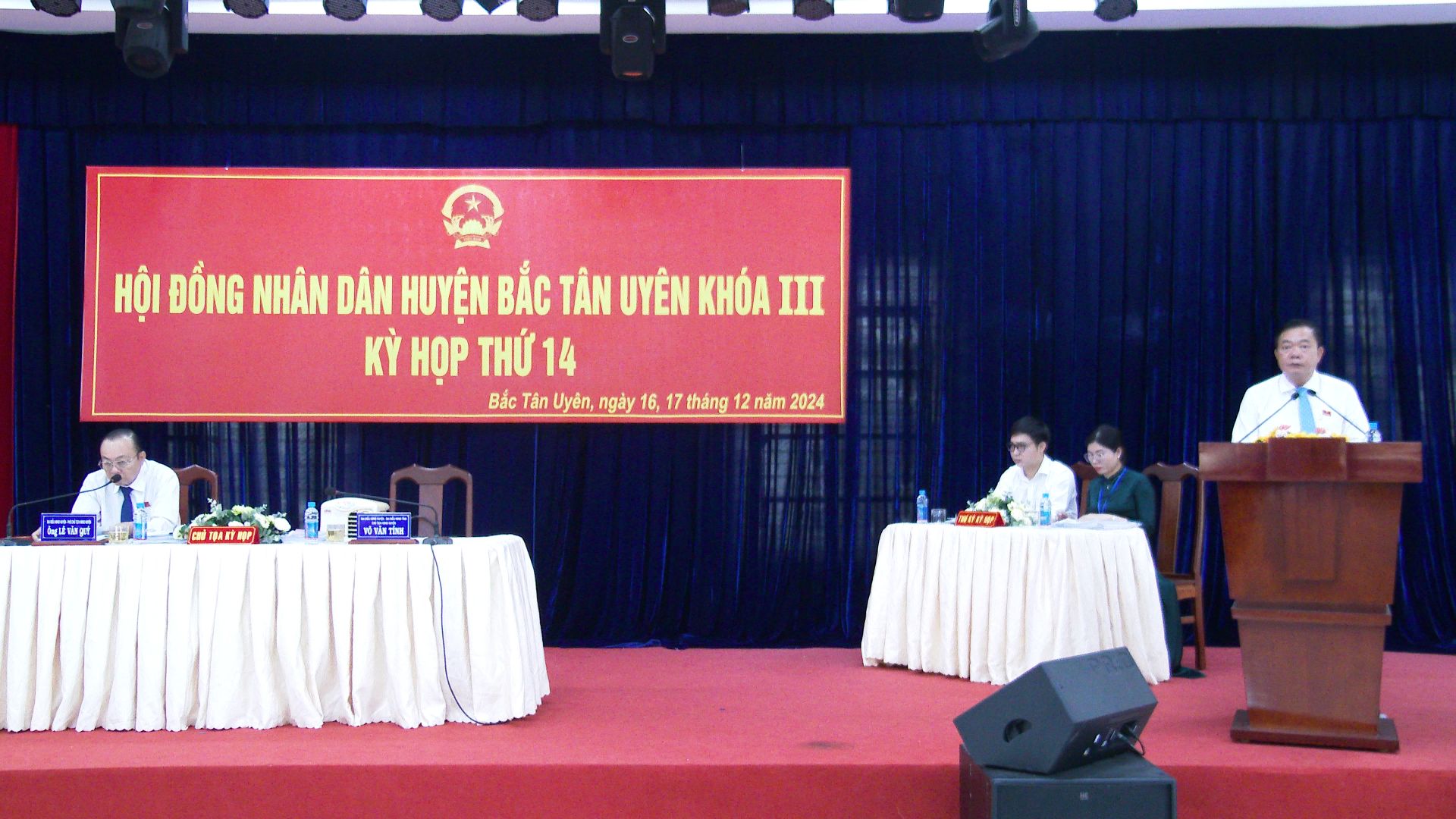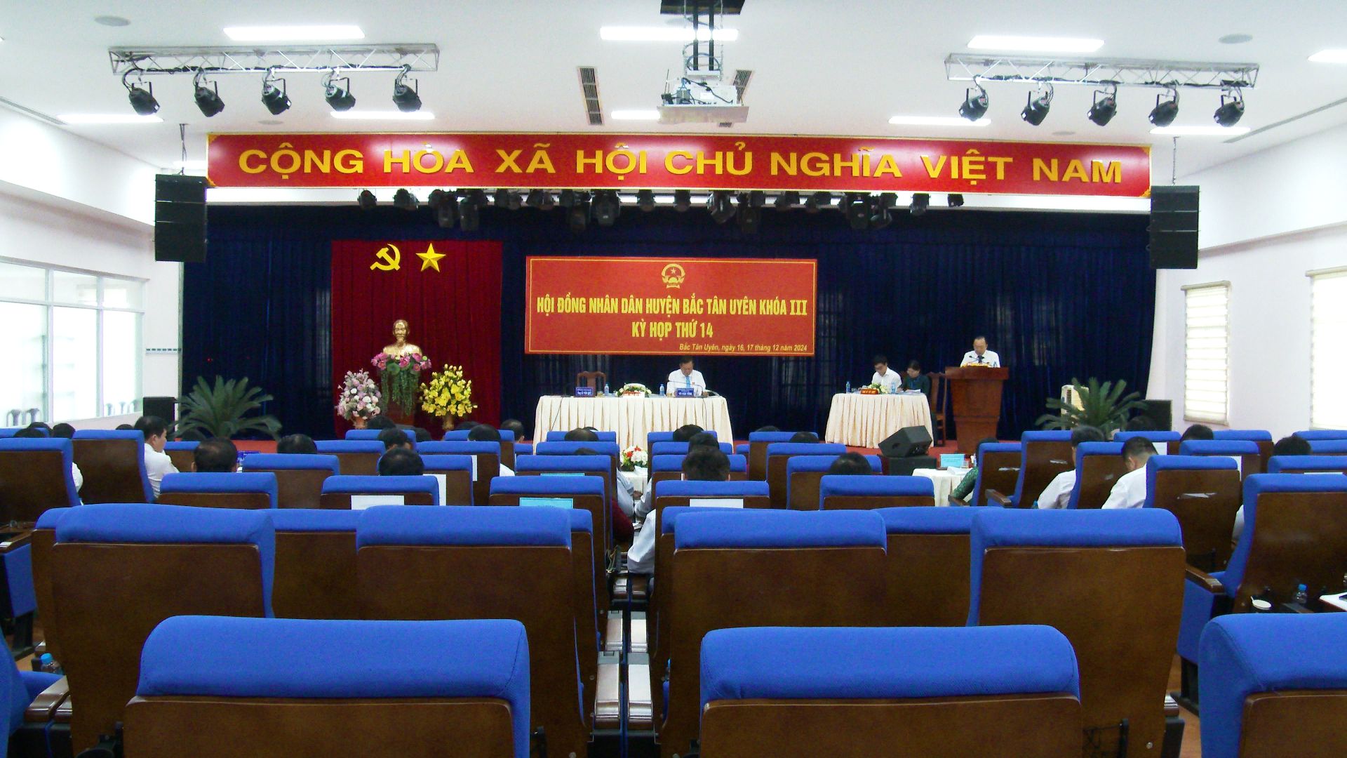 Ngày 16/12, huyện Bắc Tân Uyên tổ chức kỳ họp HĐND huyện lần thứ 14-khóa III, nhiệm kỳ 2021-2026. Đến dự kỳ họp có bà Nguyễn Trường Nhật Phượng - Phó Chủ tịch HĐND tỉnh, ông Thái Thanh Bình - Tỉnh ủy viên - Bí thư Huyện ủy, ông Võ Văn Tính - Phó Bí thư Thường trực Huyện ủy - Chủ tịch HĐND huyện, ông Nguyễn Thành Thường - Phó Bí thư Huyện ủy - Chủ tịch UBND huyện; các ông bà là đại biểu HĐND huyện, lãnh đạo các ban, ngành, đoàn thể huyện, lãnh đạo và đại diện cử tri các xã, thị trấn trên địa bàn huyện.