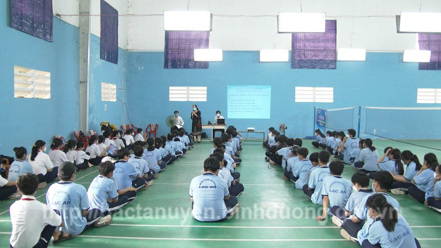 Chiều ngày 9-3, Hội Kế hoạch hóa Gia đình tỉnh Bình Dương phối hợp cùng Ban giám hiệu Trường THCS Lạc An tổ chức buổi Truyền thông chăm sóc sức khỏe sinh sản vị thành niên, thanh niên cho các em học sinh khối lớp 8 của trường.
