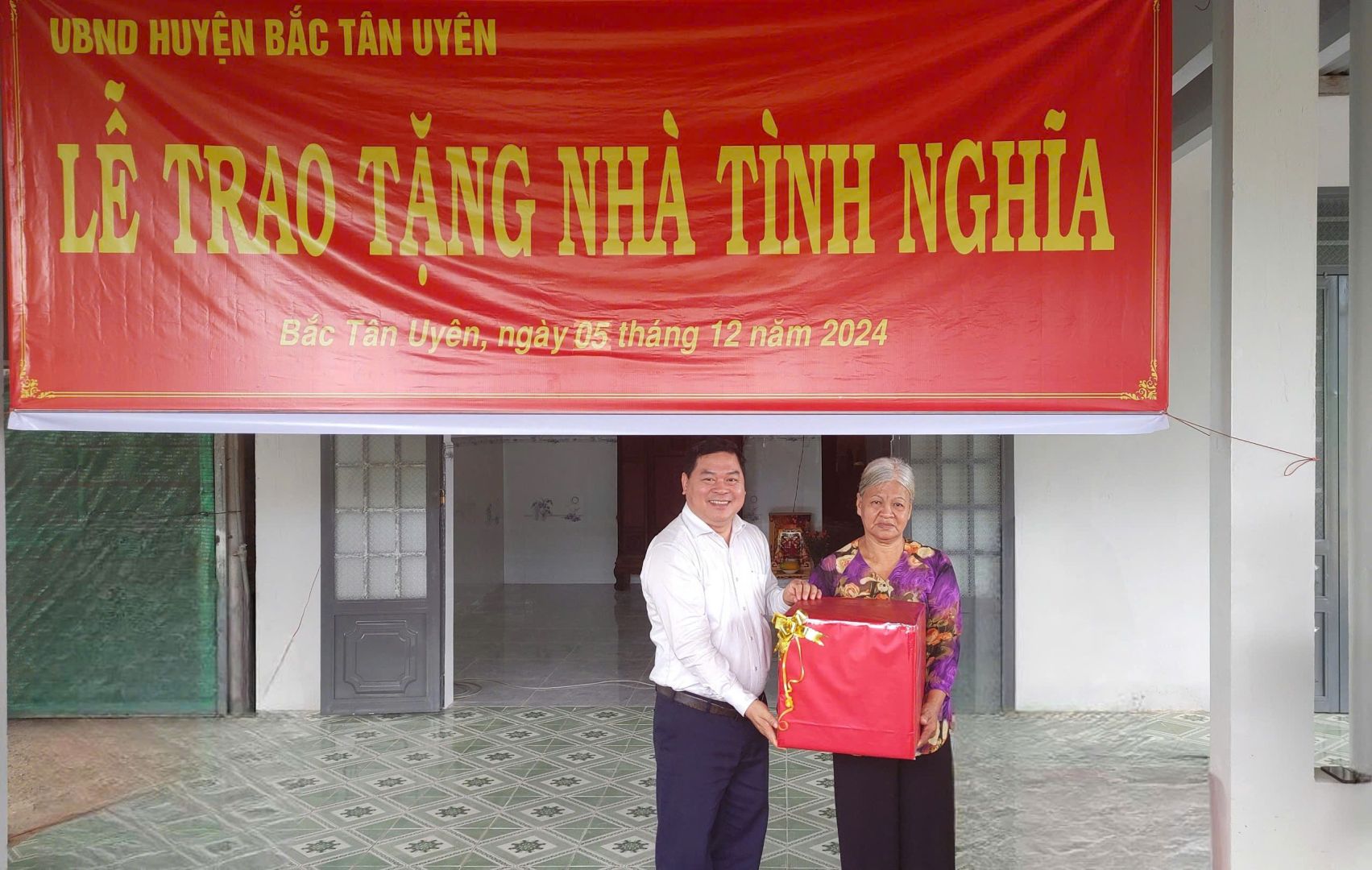 Tại buổi bàn giao "Nhà tình nghĩa", đại diện lãnh đạo UBND huyện đã trao chứng nhận, tặng quà chúc mừng bà Thái Thị Mai có căn nhà mới; mong bà tiếp tục sống vui, sống khỏe, ấm áp khi tết đến xuân về. Dịp này, cấp uỷ chính quyền địa phương, các ban ngành, đoàn thể trên địa bàn đã tặng nhiều phần quà ý nghĩa cho gia đình.