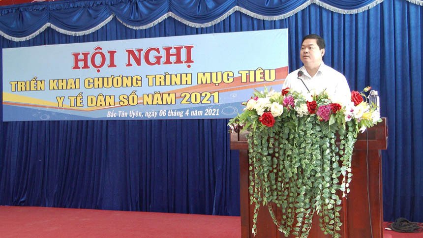 Sáng 6-4, huyện Bắc Tân Uyên tổ chức Hội nghị triển khai Chương trình mục tiêu Y tế - Dân số năm 2021. Dự hội nghị có ông Nguyễn Văn Thắm - Chi cục trưởng Chi cục Dân số tỉnh Bình Dương; ông Trần Văn Phương - UVTV Huyện ủy, Phó Chủ tịch UBND huyện, Trưởng Ban chỉ đạo.
