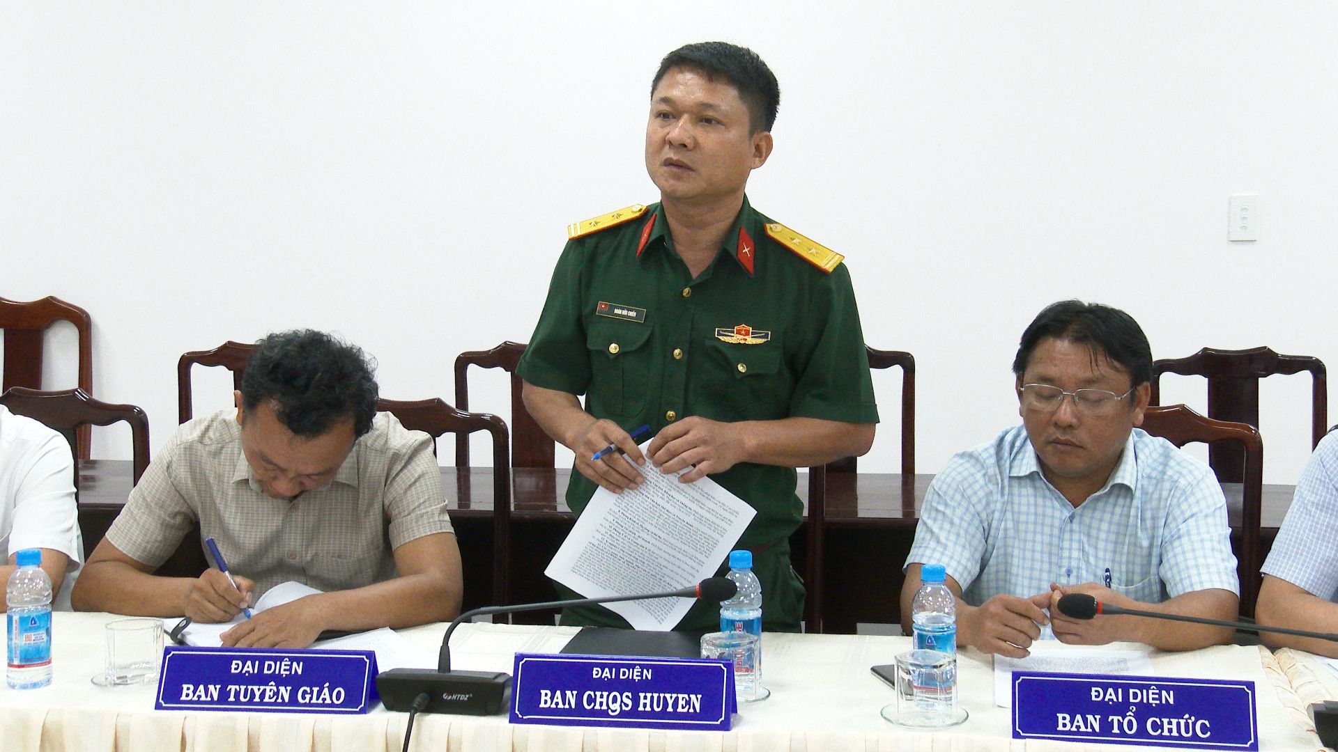 Phát biểu kết luận cuộc họp, Phó Chủ tịch UBND huyện - Trần Văn Phương đề nghị các cơ quan tham mưu tiếp thu ý kiến đóng góp, hoàn chỉnh kịch bản Lễ kỷ niệm, khẩn trương rà soát danh sách khách mời và chuẩn bị phát hành thư mời. Đồng thời, Ban CHQS huyện phối hợp với Công an các xã, thị trấn xây dựng kế hoạch đảm bảo an ninh trật tự, an toàn tại lễ kỷ niệm. Bên cạnh đó, mặt trận và các đoàn thể trong toàn huyện cần đẩy mạnh công tác tuyên truyền cổ động trực quan rộng rãi về truyền thống yêu nước, chủ nghĩa anh hùng cách mạng, ý chí quyết chiến, quyết thắng của đại thắng mùa Xuân năm 1975 đến quần chúng Nhân dân trước, trong và sau buổi lễ.