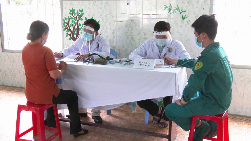 Các bác sĩ khám sàng lọc sức khỏe các đối tượng trước tiêm chủng