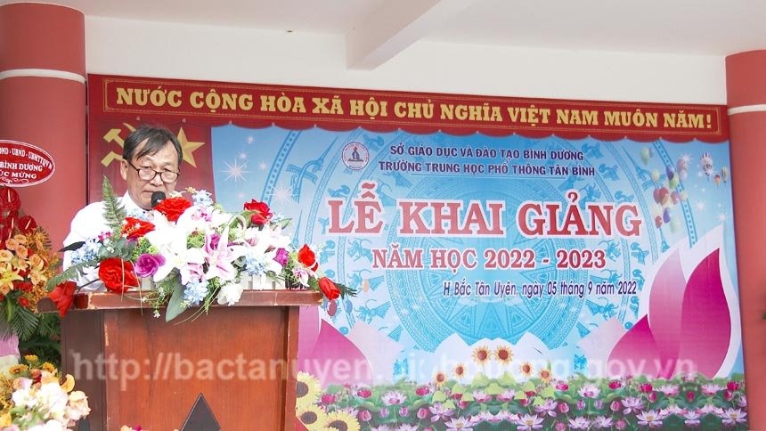Cùng với các trường trên địa bàn huyện Bắc Tân Uyên nói riêng và tỉnh Bình Dương nói chung, sáng ngày 5-9, trường THPT Tân Bình tổ chức lễ khai giảng năm học 2022-2023. Dự lễ có ông Võ Văn Bá - Trưởng ban Nội chính Tỉnh ủy, ông Phạm Anh Dũng - Phó Trưởng phòng Giáo dục Trung học Thường xuyên tỉnh, ông Thái Thanh Bình - Bí thư Huyện ủy, Chủ tịch UBND huyện, bà Nguyễn Thị Tuyết - Phó phòng Giáo dục và Đào tạo huyện, lãnh đạo xã Tân Bình, Ban giám hiệu, các thầy cô giáo và toàn thể học sinh trường THPT Tân Bình.