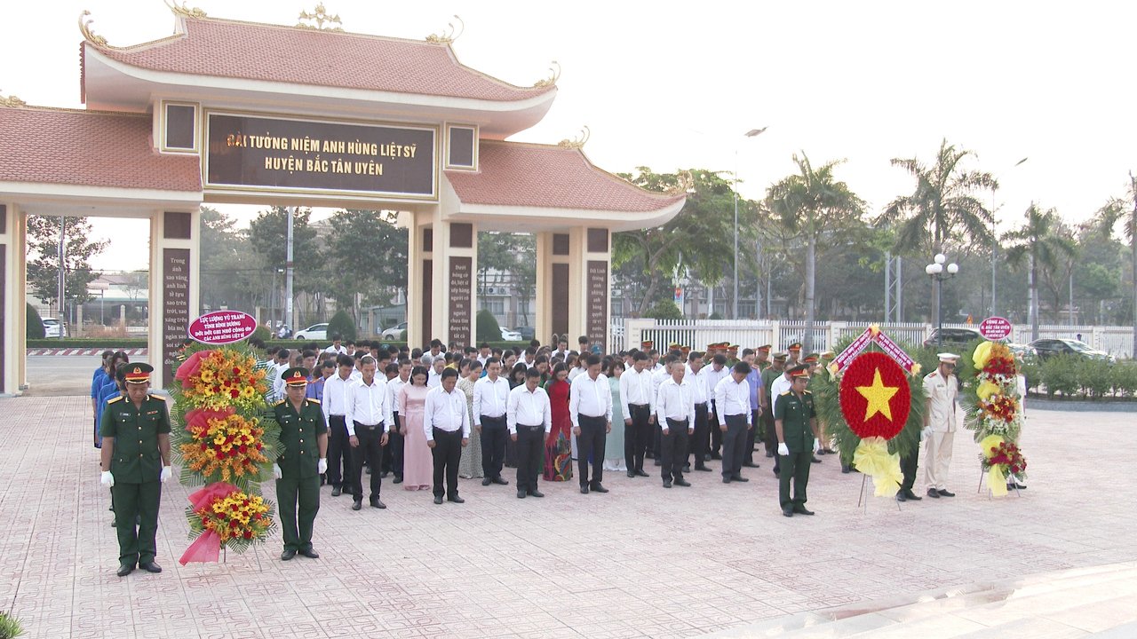 Nhân kỷ niệm 94 năm Ngày thành lập Đảng Cộng Sản Việt Nam (3/2/1930-3/2/2024), sáng ngày 01/02, Huyện ủy -HĐND-UBND-UBMTTQ huyện Bắc Tân Uyên trang trọng tổ chức viếng Đài tưởng niệm liệt sĩ huyện. Tham dự chương trình có đồng chí Thái Thanh Bình-Tỉnh ủy viên-Bí thư Huyện ủy, đồng chí Võ Văn Tính-Phó Bí thư Thường trực Huyện ủy-Chủ tịch HĐND huyện, đồng chí Nguyễn Thành Thường-Phó Bí thư Huyện ủy-Chủ tịch UBND huyện, đồng chí Phạm Văn An-Trưởng ban Dân vận Huyện ủy-Chủ tịch Ủy ban MTTQ Việt Nam huyện, các đồng chí Uỷ viên Thường vụ Huyện ủy, Ban chấp hành Đảng bộ huyện, cán bộ công chức, viên chức các cơ quan, ban ngành, đoàn thể huyện, đoàn đại biểu dân quân chính đảng thị trấn Tân Thành và xã Đất Cuốc