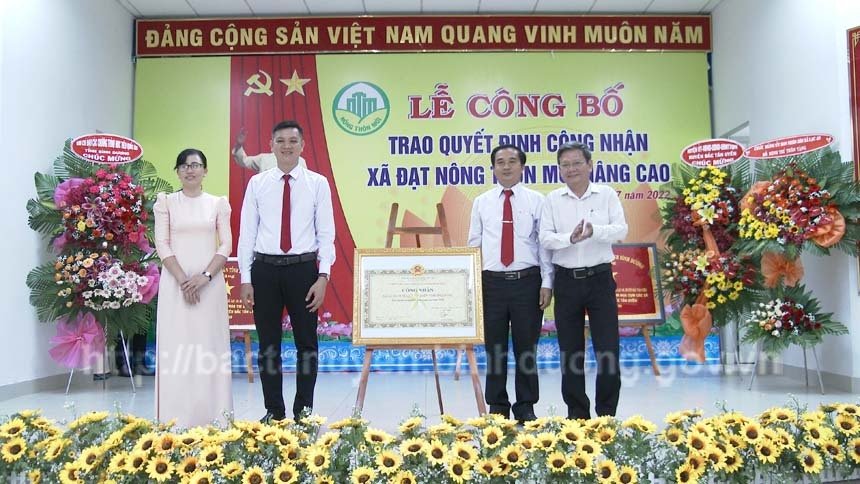 Ông Lê Cảnh Dần, Phó Giám đốc Sở Nông nghiệp và Phát triển nông thôn tỉnh Bình Dương trao Quyết định công nhận xã Lạc An, huyện Bắc Tân Uyên đạt chuẩn nông thôn mới nâng cao năm 2020