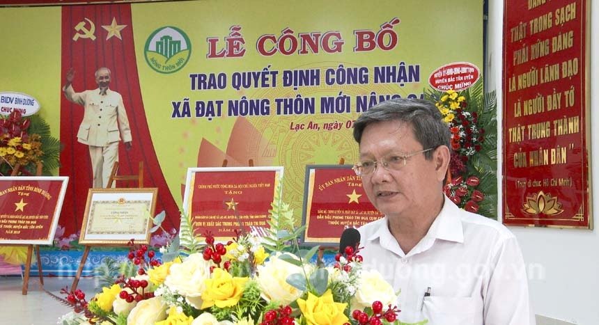 Phát biểu tại buổi lễ công bố, ông Lê Cảnh Dần - Phó Giám đốc Sở NN&PTNN tỉnh, biểu dương những thành tích đã đạt được trong công tác xây dựng nông thôn mới của Ban quản lý xây dựng nông thôn mới xã Lạc An. Đồng thời ông cũng yêu cầu địa phương cần xác định đâu là mặt hàng chủ lực của xã; tiếp tục đổi mới mô hình tăng trưởng gắn với nông nghiệp sạch, nông nghiệp hữu cơ, xây dựng vùng nguyên liệu nông sản tập trung, đáp ứng các tiêu chí quản lý chất lượng VietGAP, OCOP, hướng đến đạt chất lượng 5 sao và truy xuất nguồn gốc đối với tất cả sản phẩm nông nghiệp.