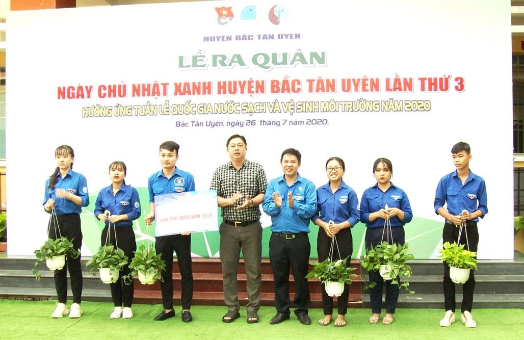 Sáng ngày 26-6, Huyện đoàn Bắc Tân Uyên phối hợp cùng Phòng Tài nguyên và Môi trường huyện, Điện lực huyện tổ chức lễ phát động ra quân Ngày Chủ nhật Xanh lần thứ III năm 2020 và hưởng ứng tuần lễ nước sạch vệ sinh môi trường. Đến dự lễ phát động có bà Lê Thị Anh Đào-Phó Ban Dân vận Huyện ủy, bà Võ Thị Tuyết Nhung-Phó Chủ tịch UBMTTQ huyện, ông Đỗ Ngọc Lợi-Bí thư Huyện đoàn, ông Nguyễn Thiện Tâm-Phó Trưởng phòng Tài nguyên và Môi trường huyện.