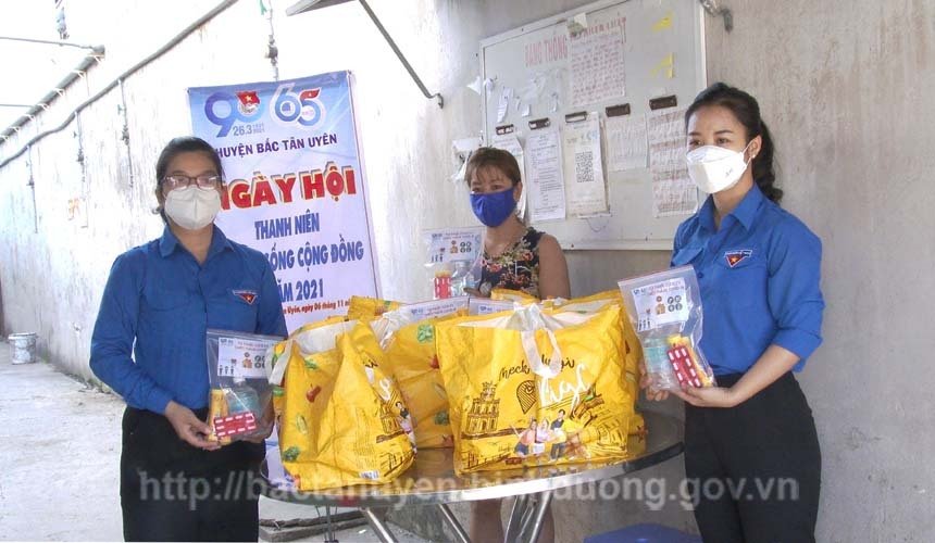 Thực hiện kế hoạch tổ chức Ngày hội Thanh niên vì cuộc sống cộng đồng năm 2021. Ngày 6-11, Ban Thường vụ Huyện Đoàn Bắc Tân Uyên phối hợp cùng BTV Đoàn các xã thị trấn Tân Bình, Đất Cuốc và Bình Mỹ đã đến thăm và tặng 50 túi an sinh cho nhân dân, thanh niên công nhân là F1, F0 không triệu chứng hiện đang cách ly tại nhà, tổng kinh phí quà tặng là 16 triệu đồng. Ngoài ra, BTV Huyện Đoàn còn hỗ trợ thêm 50 túi thuốc, nước sát khuẩn đồng hành cùng F0 vượt qua dịch bệnh.