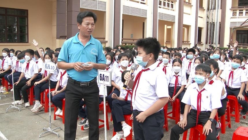 Học sinh chia sẻ kiến thức ATGT tại lớp ngoại khóa