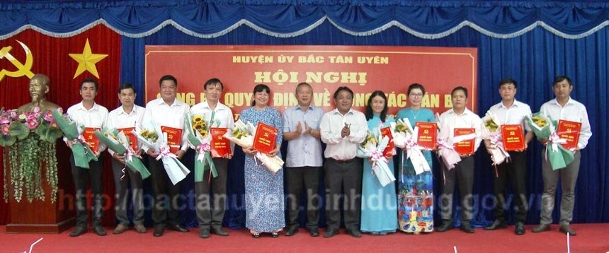 Theo đó, UBND huyện Bắc Tân Uyên đã trao các Quyết định bổ nhiệm: ông Đoàn Quốc Tuấn - Chuyên viên Phòng Lao động - Thương binh và Xã hội huyện giữ chức vụ Phó Trưởng phòng LĐ-TB&XH huyện; ông Mai Văn Hải - Viên chức Xí nghiệp Công trình công cộng huyện giữ chức vụ Phó Giám đốc Xí nghiệp Công trình công cộng huyện; ông Nguyễn Hoài Bích - Viên chức Trung tâm Văn hóa Thể thao và Truyền thanh huyện, giữ chức vụ Phó Giám đốc Trung tâm VHTT&TT huyện; bà Thượng Thị Hồng Thơm - Phó Trưởng khoa khám bệnh Trung tâm Y tế huyện giữ chức vụ Phó Trưởng Phòng Y tế huyện; bà Huỳnh Thị Minh Hà - Chuyên viên Phòng Giáo dục và Đào tạo huyện giữ chức vụ Phó Trưởng phòng GD&ĐT huyện; ông Lê Châu Ra - Chuyên viên Phòng Kinh tế huyện giữ chức vụ Phó Trưởng phòng Kinh tế huyện; ông Trần Văn Vũ - Chuyên viên Phòng Tư pháp huyện giữ chức vụ Phó Trưởng phòng Tư pháp huyện; ông Trần Huy Hoàng - Chuyên viên Phòng Tài nguyên và Môi trường huyện giữ chức vụ Phó Trưởng phòng TN&MT huyện; bà Nguyễn Lê Ngọc - Chuyên viên Văn phòng Hội đồng nhân dân - Ủy ban nhân dân huyện giữ chức vụ Phó Chánh văn phòng HĐND-UBND huyện; ông Phạm Thanh Long - Nhân viên Trung tâm Phát triển quỹ đất huyện giữ chức vụ Phó Giám đốc Trung tâm Phát triển quỹ đất huyện. Các Quyết định trên có hiệu lực từ ngày 01/6/2022, thời gian bổ nhiệm là 5 năm.