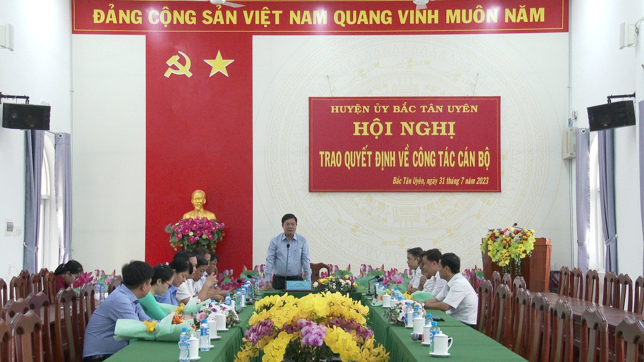 Sáng ngày 31/7, Huyện ủy Bắc Tân Uyên tổ chức hội nghị công bố các Quyết định bổ nhiệm, điều động, chỉ định cán bộ của Ban thường vụ Huyện ủy và Chủ tịch UBND huyện. Ông Võ Văn Tính-Phó Bí thư Thường trực Huyện ủy-Chủ tịch HĐND huyệnchủ trì hội nghị
