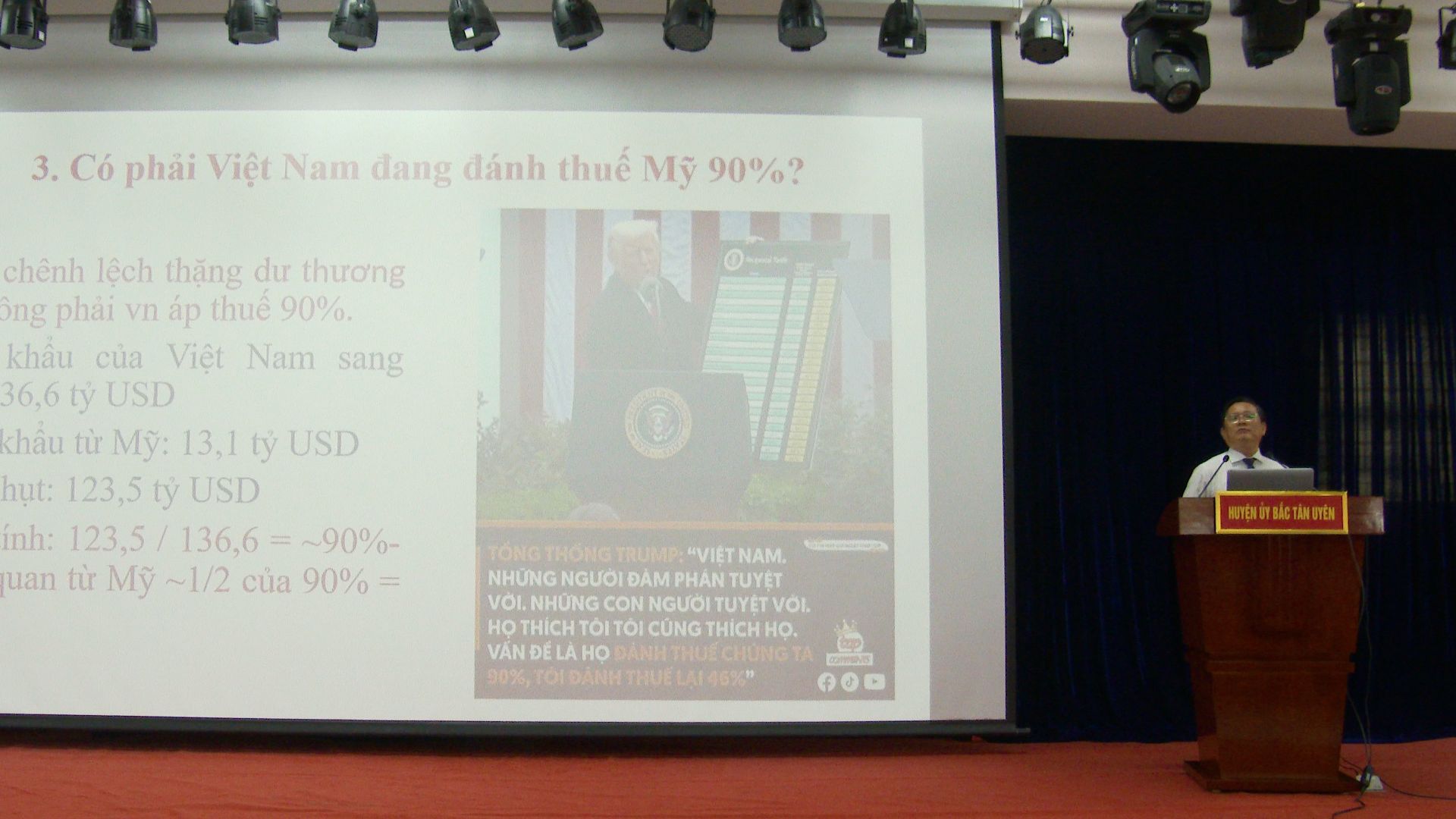Tại hội nghị, các đại biểu được nghe Tiến sĩ Vũ Trung Kiên, Phó Trưởng khoa Xây dựng Đảng, Học viện chính trị khu vực II thông tin một số nội dung liên quan đến vấn đề chính sách áp thuế đối ứng của Mỹ đối với Việt Nam và chủ trương, giải pháp của Việt Nam. Đồng thời, thông tin chuyên đề về “Một số vấn đề liên quan công tác sắp xếp tổ chức bộ máy của hệ thống chính trị hiện nay”, đây là nhiệm vụ trọng tâm, cấp bách, có ý nghĩa quan trọng đối với sự phát triển của đất nước trong giai đoạn mới; là đòi hỏi tất yếu nhằm nâng cao hiệu năng, hiệu lực, hiệu quả hoạt động của bộ máy tổ chức cán bộ các cấp, đáp ứng yêu cầu xây dựng một hệ thống chính trị hiện đại, minh bạch, vì sự phát triển nhanh, bền vững của Việt Nam trong kỷ nguyên mới.