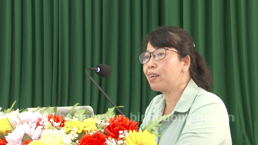 Đồng chí Bùi Kim Vân – Trưởng phòng lưu trữ, Văn phòng Tỉnh ủy trình bày về công tác văn thư – lưu trữ lại lớp tập huấn