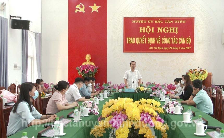 Sáng ngày 29-3, Huyện ủy Bắc Tân Uyên tổ chức Hội nghị trao quyết định về công tác cán bộ, đồng chí Trương Văn Phong - Phó Bí thư Huyện ủy, chủ trì hội nghị. Cùng tham dự có đồng chí Nguyễn Thanh Lâm - Ủy viên Thường vụ, Trưởng Ban Tổ chức Huyện ủy; đồng chí Huỳnh Văn Thọ - UVTV, Chủ nhiệm Ủy ban kiểm tra Huyện ủy, Chánh Thanh tra huyện và đồng chí được điều động, bổ nhiệm.
