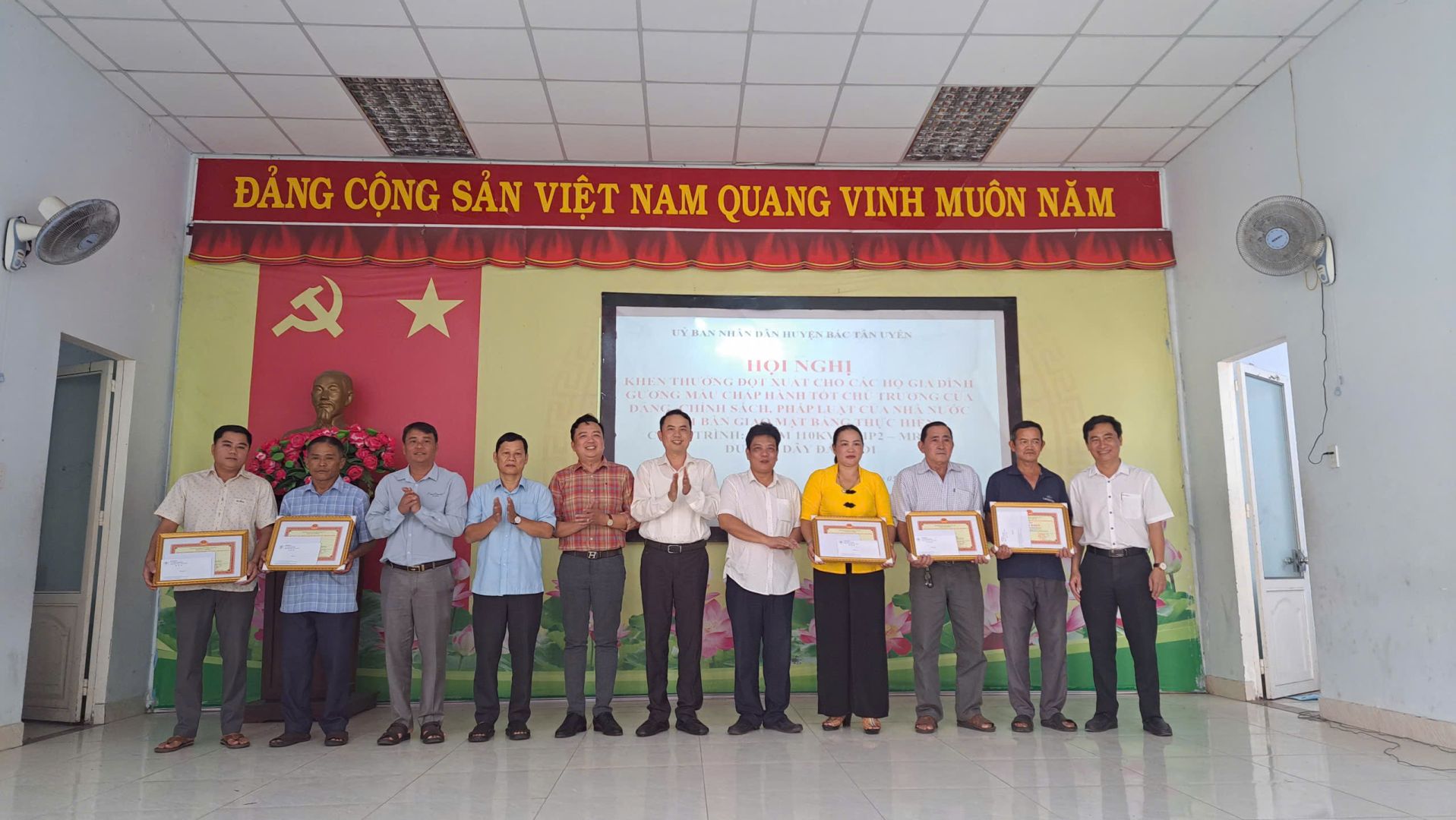 trao giấy khen và quà cho các hộ gia đình gương mẫu