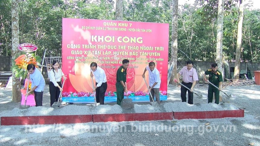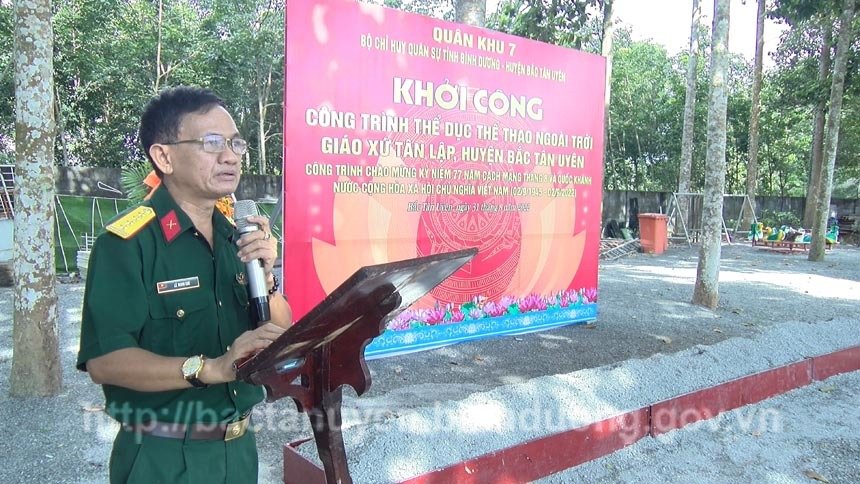 Dự và phát biểu tại lễ khởi công, Đại tá Lê Minh Chí - Phó Chính ủy Bộ Chỉ huy quân sự tỉnh cho biết đây là công trình nhằm chào mừng Kỷ niệm 78 năm ngày thành lập Quân đội Nhân dân Việt Nam (22/12/1944-22/12/2022); qua đó góp phần tăng cường gắn bó, đoàn kết giữa lực lượng vũ trang Quân khu 7, lực lượng vũ trang tỉnh nói chung và lực lượng vũ trang huyện nói riêng với đồng bào Giáo xứ Tân Lập, xã Tân Lập; góp phần đáp ứng nhu cầu sinh hoạt văn hóa, hoạt động thể dục thể thao, rèn luyện sức khỏe cho đồng bào giáo dân; nâng cao nhận thức, trách nhiệm của cán bộ, chiến sĩ lực lượng vũ trang trong thực hiện công tác dân tộc, tôn giáo trên địa bàn.
