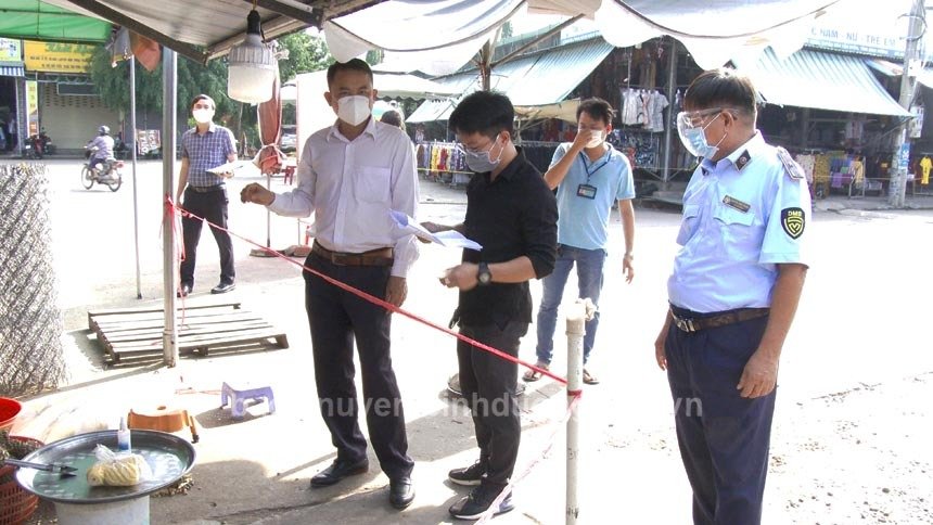 Tại chợ Bình Mỹ, Ban Quản lý chợ có tổ chức tuyên truyền, thực hiện thông điệp 5K của Bộ Y tế; có thực hiện kẻ vạch cho khách mua hàng đảm bảo khoảng cách giữa người với người, có bố trí nước sát khuẩn tại điểm kinh doanh, có trang bị tờ khai y tế, mã quét QR, có xây dựng phương án, kế hoạch, bản cam kết thực hiện phòng, chống dịch. Tuy nhiên tại thời điểm kiểm tra, Ban Quản lý chợ không thực hiện việc khai báo y tế đối với khách hàng vào chợ. Đoàn kiểm tra đã tiến hành lập biên bản xử phạt vi phạm hành chính đối với Ban Quản lý chợ Bình Mỹ về hành vi vi phạm không thực hiện khai báo y tế đối với người dân khi tham gia vào chợ mua hàng hóa theo quy định tại Khoản 2, Điều 14, Nghị định 117/2020/NĐ-CP ngày 28/9/2020 của Chính phủ Quy định xử phạt vi phạm hành chính trong lĩnh vực y tế. Đồng thời yêu cầu Ban Quản lý chợ Bình Mỹ phải thực hiện nghiêm các biện pháp phòng, chống dịch Covid-19 theo yêu cầu, hướng dẫn của cơ quan chức năng và theo quy định của pháp luật.