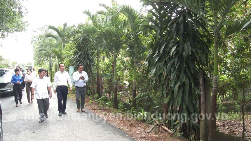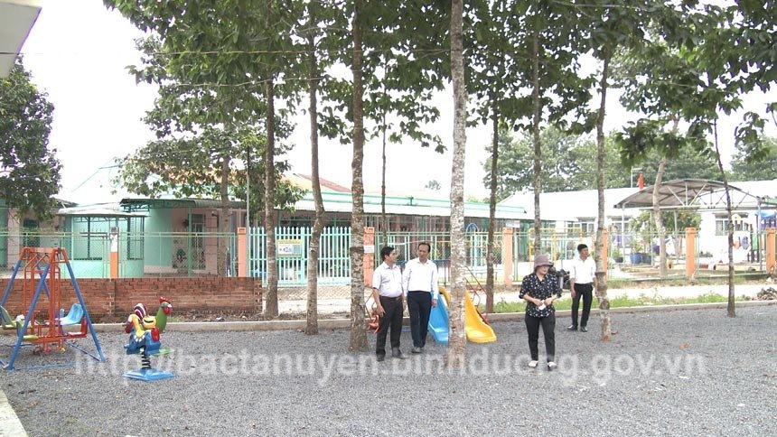 Đoàn kiểm tra thực hiện đề án “Công tác dân vận tham gia xây dựng nếp sống văn hóa-văn minh” huyện kiểm tra thực tế khu vui chơi thiếu nhi tại Văn phòng ấp 3, xã Tân Lập