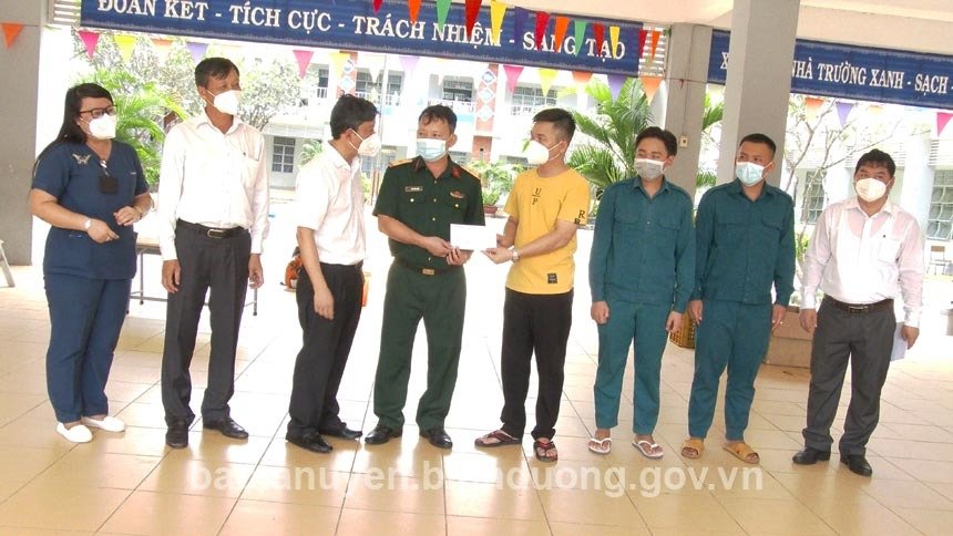 Sáng ngày 23-8, ông Võ Văn Minh-Chủ tịch UBND tỉnh Bình Dương; ôngVõ Văn Bá - Ủy viên Ban Thường vụ, Trưởng Ban Nội chính Tỉnh ủy; ông Nguyễn Hồng Chương - Giám đốc Sở Y tế tỉnh cùng với ông Trần Văn Phương - Phó Chủ tịch UBND huyện, Phó ban chỉ đạo phòng, chống dịch bệnh Covid-19 huyện đã có buổi đến thăm cán bộ, chiến sĩ, lực lượng y bác sĩ và công nhân đang cách ly tập trung tại Trường Tiểu học Bình Mỹ, huyện Bắc Tân Uyên.