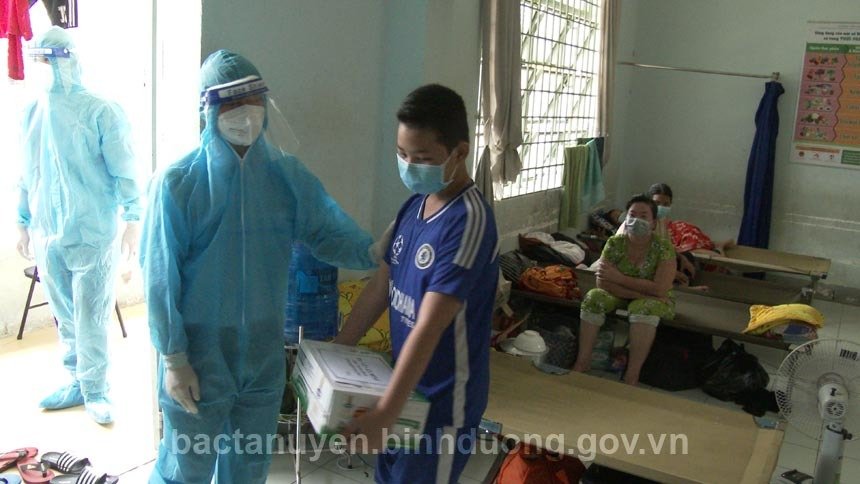 Tại nơi đến, ông Võ Văn Minh - Chủ tịch UBND tỉnh Bình Dương đã thăm hỏi động viên, chia sẻ những khó khăn và tặng quà cho công nhân đang cách ly điều trị tại đây. Qua đó, ghi nhận tinh thần trách nhiệm, sự nỗ lực của lực lượng cán bộ, chiến sĩ, các y bác sĩ đã góp phần giúp địa phương cơ bản khống chế được dịch bệnh. Đồng thời, tặng 7 phần quà cho lực lượng cán bộ, chiến sĩ, các y bác sĩ. Mỗi phần quà gồm 1 thùng sữa và 500 ngàn đồng tiền mặt. Ông Võ Văn Minh mong muốn trong thời gian tới, cán bộ, chiến sỹ các y bác sĩ tiếp tục phát huy những kết quả đạt được, cùng với các cấp Đảng, chính quyền và nhân dân huyện Bắc Tân Uyên làm tốt công tác phòng, chống dịch bệnh, sớm đưa huyện trở về trạng thái bình thường mới.