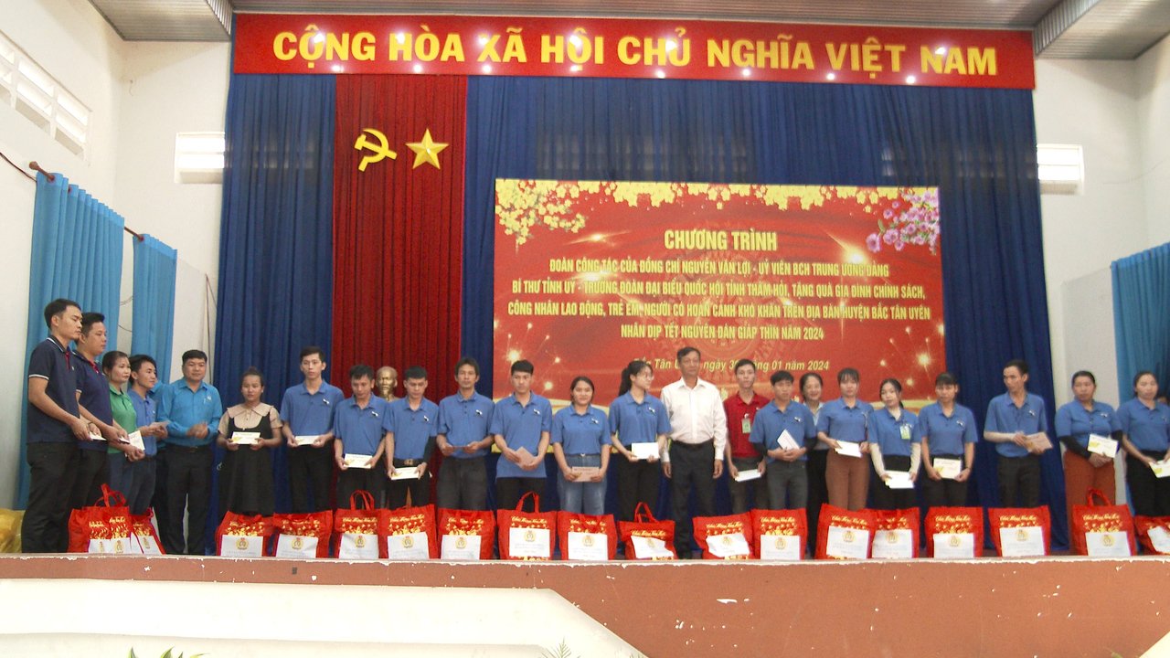 Tại chương trình, lãnh đạo tỉnh, huyện đã trao tặng 150 phần quà cho hộ nghèo, trẻ em, công nhân lao động có hoàn cảnh khó khăn trên địa bàn huyện. trong đó, trao tặng 80 phần quà cho hộ nghèo, cựu chiến binh, người nhiễm chất độc da cam, mỗi phần trị giá 1,3 triệu đồng gồm 1 triệu đồng tiền mặt và quà 300 ngàn đồng; trao tặng 20 phần quà cho trẻ em có hoàn cảnh khó khăn, mỗi phần trị giá 1,2 triệu đồng gồm 1 triệu đồng tiền mặt, tập vở, bánh mức 200 ngàn đồng; trao tặng 50 phần quà cho công nhân lao động có hoàn cảnh khó khăn, mỗi phần trị giá 1,2 triệu đồng gồm 1 triệu đồng tiền mặt, quà 200 ngàn đồng.