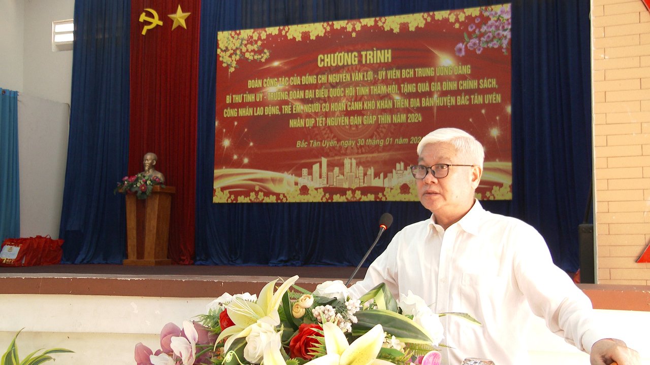 Phát biểu tại Chương trình, đồng chí Bí thư Tỉnh ủy Nguyễn Văn Lợi nhấn mạnh: Bình Dương luôn quan tâm chăm lo các đối tượng chính sách, hộ nghèo, nhằm góp phần cải thiện, nâng cao đời sống người dân. Trong dịp tết Nguyên Đán năm nay, tỉnh huy động nhiều nguồn lực chăm lo tết, tổ chức thăm tặng quà, tạo điều kiện cho các gia đình chính sách, đối tượng hộ nghèo, có hoàn cảnh khó khăn đón tết đầm ấm, vui tươi. Lãnh đạo tỉnh cũng gửi lời chúc mừng năm mới đến bà con, tin tưởng trong năm mới Giáp Thìn 2024, đời sống việc làm của mọi người được thuận lợi, tốt hơn. Trách nhiệm của tỉnh sẽ tiếp tục quan tâm chăm lo để nhân dân trên địa bàn tỉnh có cuộc sống ổn định, không ngừng phát triển.