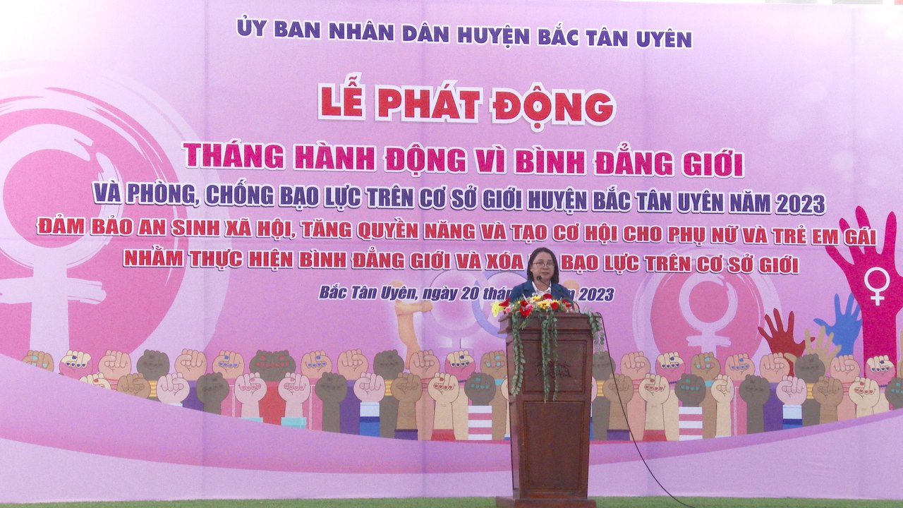 Với chủ đề“Đảm bảo an sinh xã hội, tăng quyền năng và tạo cơ hội cho phụ nữ và trẻ em gái nhằm thực hiện bình đẳng giới và xóa bỏ bạo lực trên cơ sở giới”, Tháng hành động vì bình đẳng giới và phòng ngừa, ứng phó với bạo lực trên cơ sở giới huyện Bắc Tân Uyên năm 2023 diễn ra với các hoạt động chính: tổ chức Lễ phát động và chiến dịch truyền thông trên địa bàn huyện; đẩy mạnh các hoạt động tuyên truyền thông qua các sản phẩm và phương tiện truyền thông. Lễ là hoạt động khởi đầu trong chuỗi các hoạt động nhằm đẩy mạnh công tác tuyên truyền, vận động các cấp, các ngành, thu hút sự quan tâm, đề cao vai trò, trách nhiệm và tính chủ động tham gia của cá nhân, gia đình, cộng đồng trong việc đảm bảo an sinh xã hội, tăng cường quyền năng cho phụ nữ và trẻ em gái nhằm thúc đẩy bình đẳng giới, phòng ngừa, ứng phó với bạo lực, xâm hại phụ nữ và trẻ em.